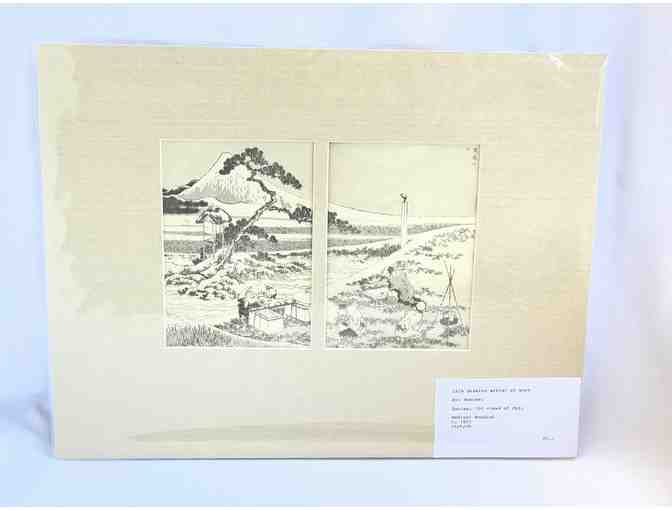 Here is a chance to get your hands on a unique and beautiful traditional Japanese woodcut. This woodcut is an original 19th Century piece of art done by the artist Hokusai. The artist in the picture looks like Hokusai himself and shows a life drawing of the artist at work. Display this truly unique traditional Japanese woodcut in your home or office!
