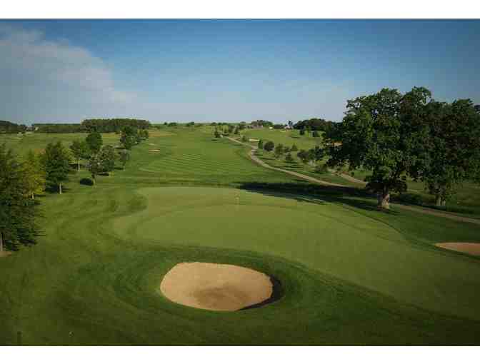 Golf for 2 includes a cart, a sleeve of balls and tees