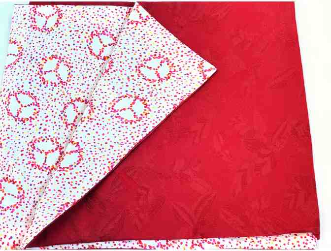 Adorable and sweet red antique obi runner with polka dot, colorful backing-- perfect for your table during the fall or winter!