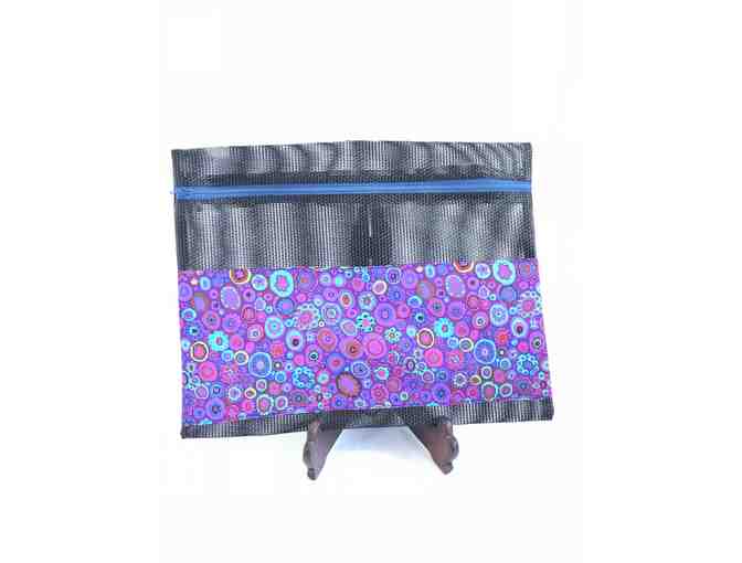 Perfect for travel, this mesh bag with beautiful fabric will hold many little items that would otherwise be lost in your luggage! Use it for a few toiletries, undergarments, a swimsuit for a tropical getaway, or socks! There are so many uses for this perfectly sized, handcrafted mesh bag.