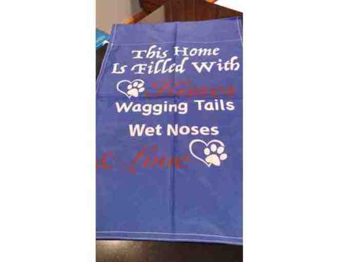 11 1/2 by 18 1/2 Garden Flag Blue flag that states, This Home is Filled with Kisses , Wagging Tails, Wet Noses and Love