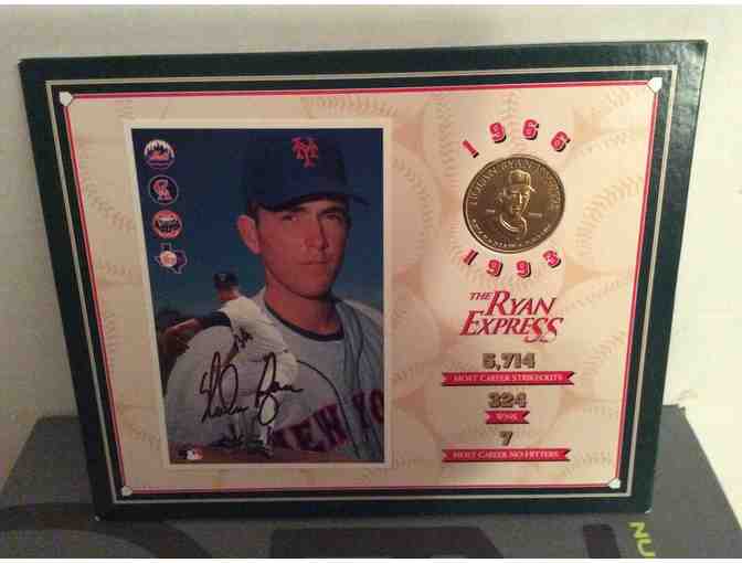 Nolan Ryan - Autographed Stat Card Photo with Medallion