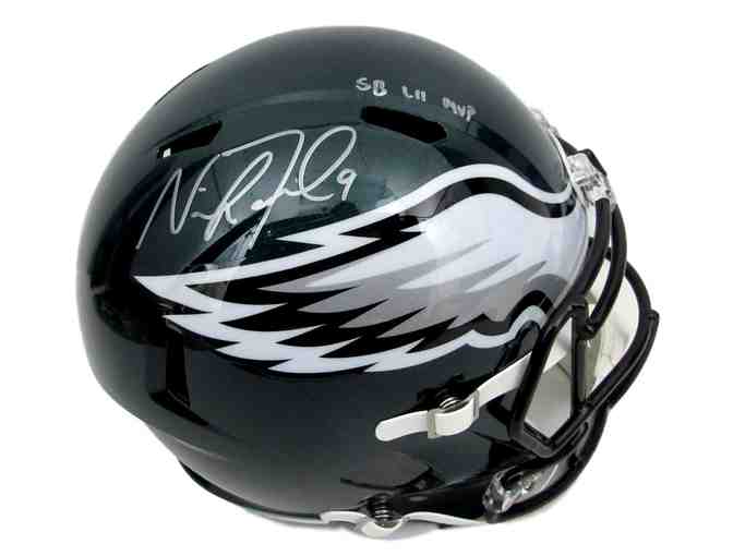 - Full-size Speed Replica Eagles Commemorative Super Bowl LII helmet autographed by Nick Foles. Nick also added a Super LII MVP inscription. Comes with a numbered Fanatics hologram and Certificate of Authenticity.
