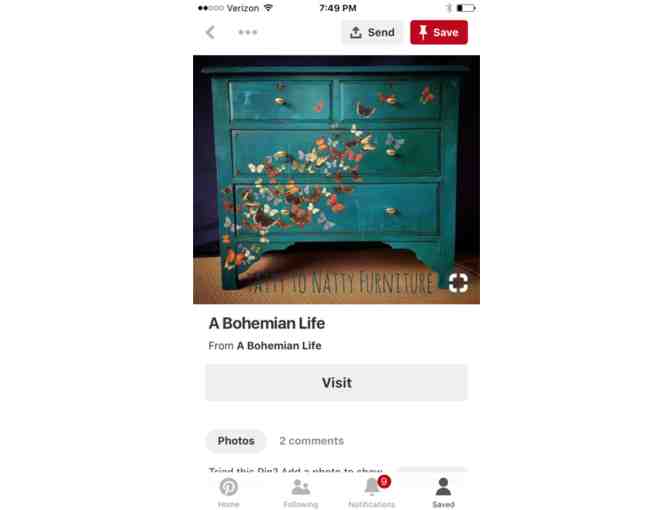 A one of a kind, uniquely designed dreser by Lotus Flower Furniture. Custom finished by a local artist specifically. Examples of work can be seen on Facebook page Lotus Flower Furniture.Pictures show dresser before refinishing and example of work, though not exact piece of furniture.