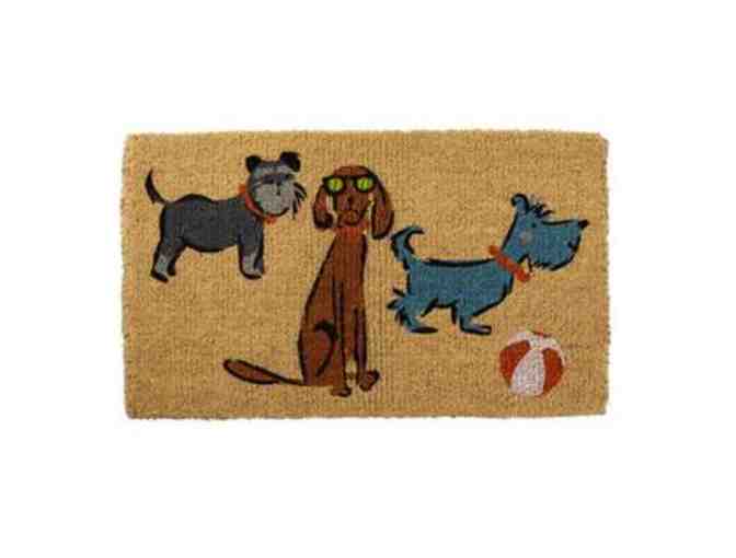 Accessorized with sunglasses, colorful collars, and a beach ball, the playful pups on this coir doormat are ready for some fun in the sun! This original design reproduced on mat of natural coir, a durable fiber made from coconut shells.