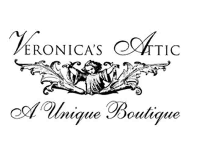 A $100 gift certificate to be used at the Veronica's Attic store. Veronica's Attic is a family-owned boutiques that offers a wide variety of jewelry, beauty products, and more.