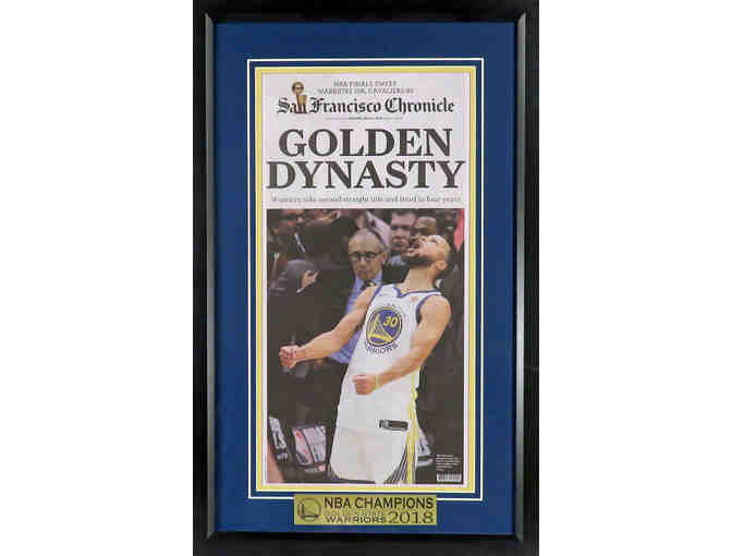 Back-to-back baby! During the 2016 offseason, Kevin Durant became a Golden State Warrior, joining Curry, Thompson & Green. What is that saying about the “rich getting richer?” Those three won an NBA Championship in 2015 and set an NBA record with 73 regular season wins in 2016…without KD. Then came Kevin, who is, of course, one of the best players in basketball. Durant has won an NBA MVP, multiple NBA scoring titles, NBA Rookie of the Year Award, and an Olympic gold medal. And now he is on the same team as All-Stars, Olympic Gold Medalists, and NBA Champions, Stephen Curry (a 2x MVP!), Klay Thompson and Draymond Green. And yes...together this group has created some Dub Nation Magic, winning back-to-back Championships in 2017 and 2018. That’s 3 Dub Championships in 4 years…all versus LeBron & the Cavs in the Final. Can you say Dynasty? This Sports Gallery Display features an actual San Francisco Chronicle Front Page after the Warriors Championship win, expertly framed in black wood, Warriors matting (w/ Optional V-Groove...you can choose with or without) and SGA Exclusive "2018 NBA CHAMPIONS" Plate. A unique collectible that would make a great collectible for any 'Dubs fan! PLEASE NOTE: This is an actual newspaper so has normal newspaper characteristics of crease(s), slight blemishes, etc.