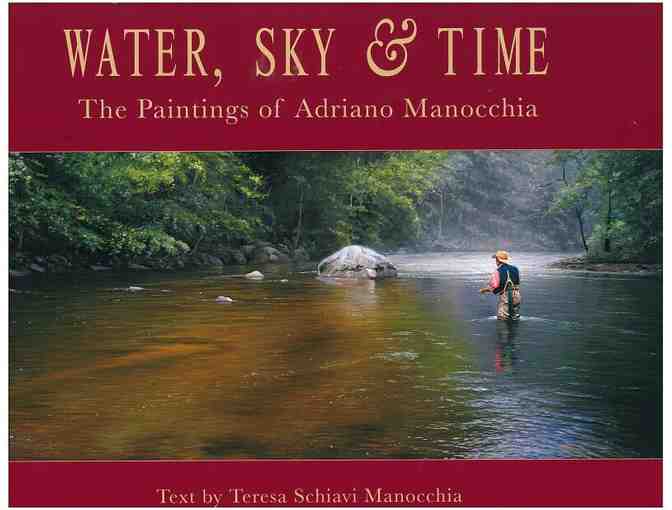 A signed, hardcopy of Water, Sky & Time featuring the paintings of award-winning New York artists Adriano Manocchia with scenes of the Adirondack, Yellowstone and places around the globe. Included with the 132-page book is a signed print by the artist.