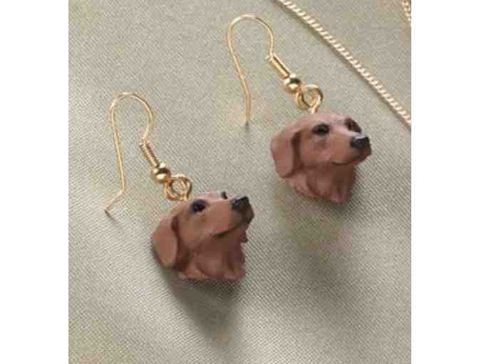 Show your loyalty to that special Doxie in your life with these 3-D Red Dachshund on gold-tone French wire hook earrings.