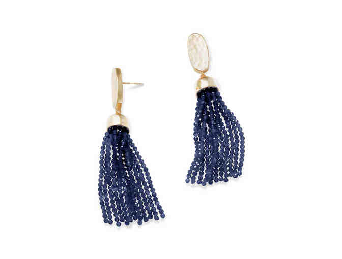 Marin gold statement earrings feature beaded tassels and Kendra Scott's signature oval shape. These playful earrings in navy cat's eye are easy to dress up or down, and add a pop of color to your look.