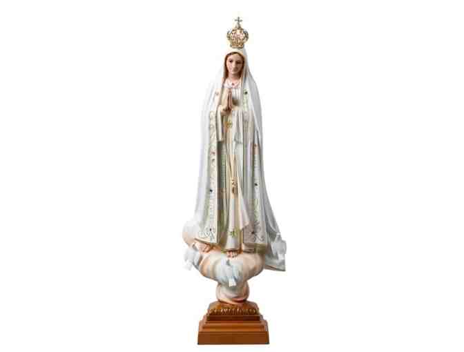 A beautiful reminder to live the Fatima message, this stunning 20" Our Lady of Fatima statue turns our hearts and minds toward the Blessed Mother and the visionaries who received Mary's message in Fatima in 1917. Let this commemorative statue inspire you to draw near to Our Lord through Our Lady. Beautifully made in Fatima, Portugal. A powerful reminder to both young and old alike to answer God's call of prayer and penance through the voice of Mary.