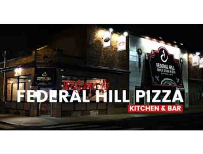 One twenty-five dollar ($25.00) gift certificate to Federal Hill Pizza at 495 Main Street, Warren, RI or 1039 Chalkstone Avenue, Providence, RI.