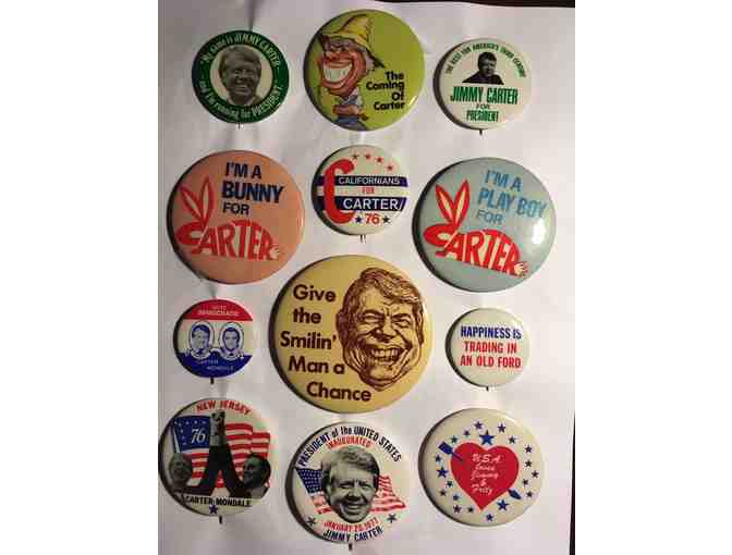 12 buttons from Jimmy Carter's first and successful Presidential Campaign in 1976 when he ran against incumbent President Gerald Ford. He was the 39th President of the United States. He also served as the Governor of Georgia from 1971-75.