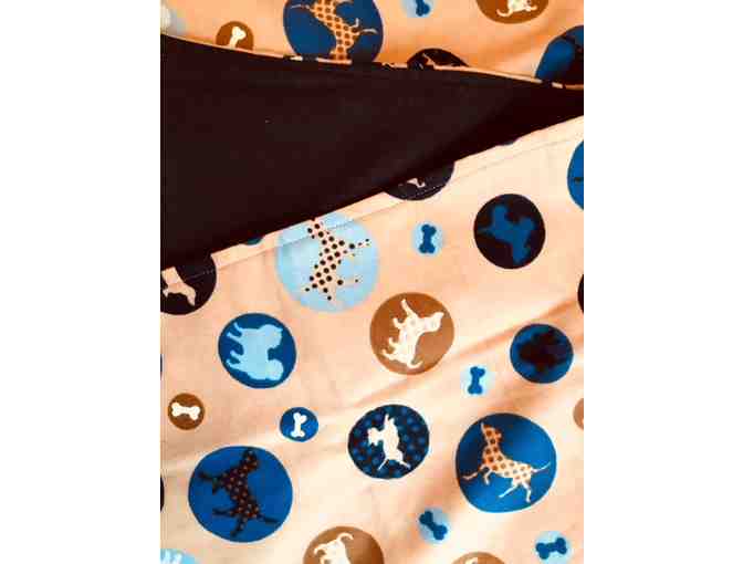 You will love this blanket made by Kelly Stevens of GoneDoggie!! The beige background has whimsical circles with dogs! And yes, even a doxie!! It is super soft! The back is a rich navy blue. Perfect for a baby or for your doxie!! Quite the snuggle blanket! Free shipping with your buy-it-now purchase!!