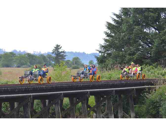 Enjoy the unique experience of PEDALING a pedal powered, rail road bicycle along an inactive portion of the Port of Tillamook Bay Rail Road.