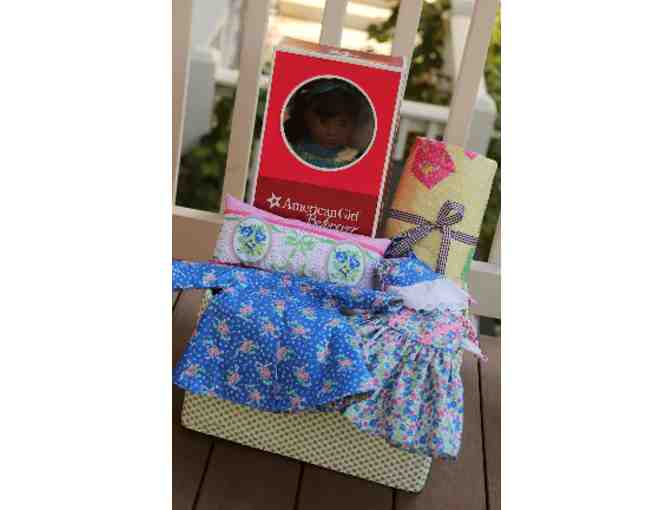 Enjoy this lovely American Girl Doll with custom clothes and accessories made by the Cottage Mama!