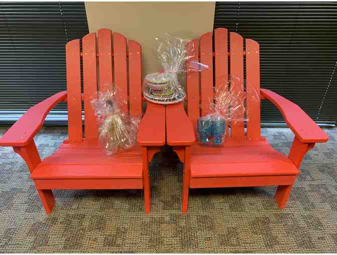 2 Red Adirondak Chairs, Drinking Glasses, Margarita Mix and Plates and Bowls