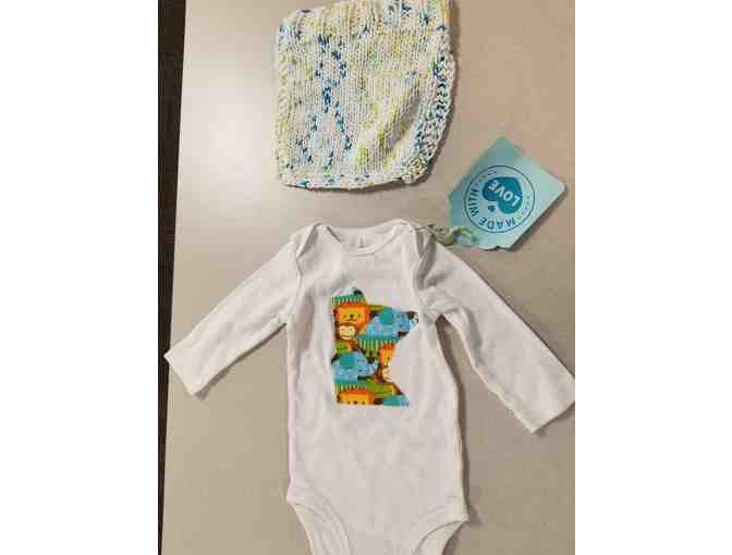 Show your Minnesota pride with this adorable onsie & knit bib combination. This outfit is a large but can be exchanged for a different size/style at the Hennepin Health craft sale.