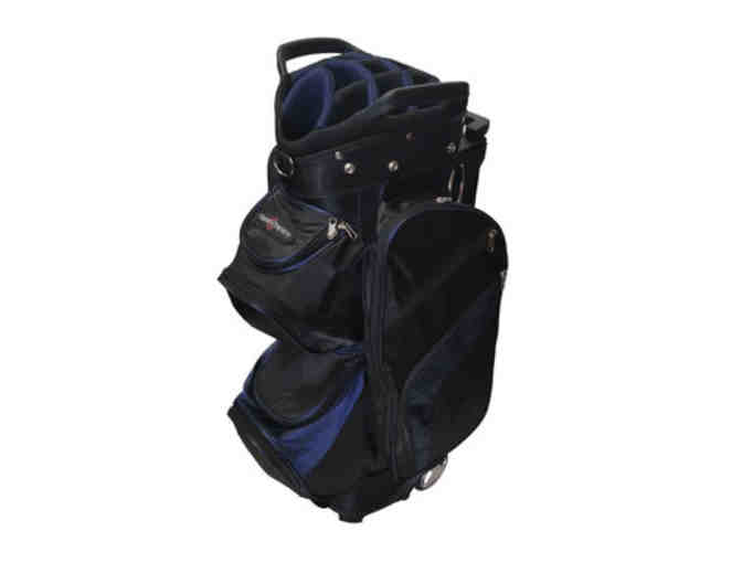 The RoadRunner golf cart bag in offers many features found on other high-end cart bags with one big benefit most don’t have… the option of rolling your bag from the car to the course.