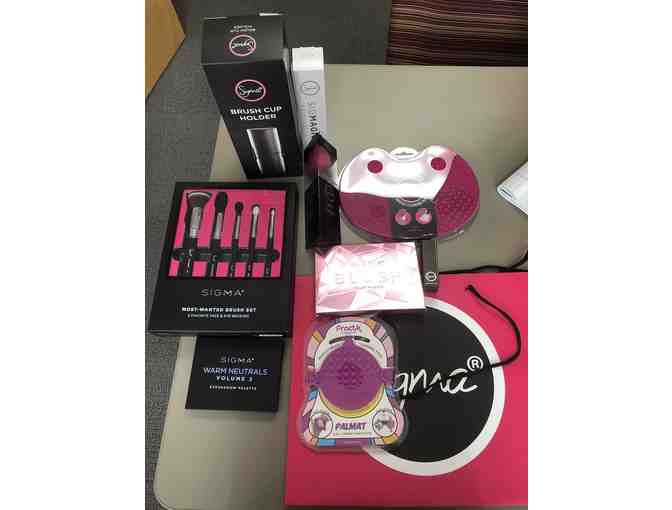 -Practk Palmat-brush scrubber (9.95) -Sigmagic brush shampoo (15.00) -3DHD Blender Pink (15.00) -Warm Neutrals Vol 2 (39.00) -Most Wanted Brush Set (73.00) -Brush Cup Holder (25.00) -Blush Cheek Palette (39.00) -Power Stick-Clover (24.00) -Brush Cleaning Mat (25.00)
