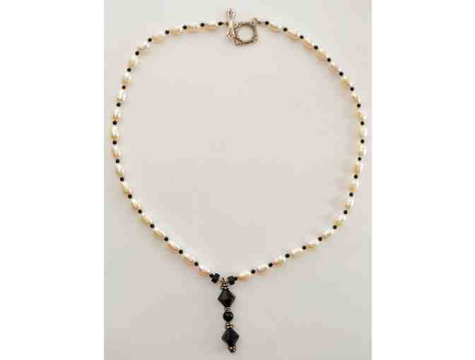 Necklace - White Fresh Water Pearls, Onyx and Sterling Silver