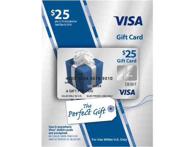 You are bidding on a $25.00 Visa gift card. Use it anywhere Visa debit cards are accepted.