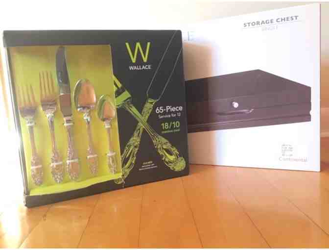 You are bidding on ONE set of 65 piece service for 12 18/10 stainless steel cutlery set (Duchess style) and a dark walnut-finish chest that holds flatware for 12.