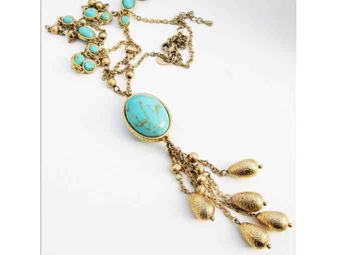 Lia Sophia Windstorm Gold and Turquoise Drop Tassel Necklace