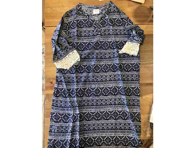 blue and white pattern tunic style dress by Sita Murt for Textura.
