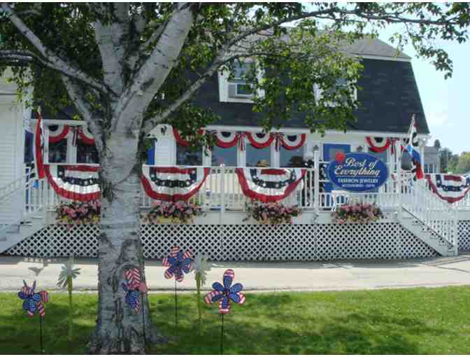 A $25 gift certificate to one of Kennebunk's "must shop" stores. The assortments of sterling silver and fashion jewelry is broad and deep. Handbags, scarves, hair accessories, sunglasses, gifts and plush toys are beautifully presented in the extraordinarily attractive store.