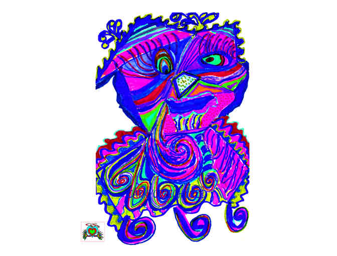 Original art. Medium: markers and colored pencils on archival paper. 8" x 10". One of 88. Professionally framed. The majority of the sale of this art goes to the artist, Kelley Karel, living well with a disability.