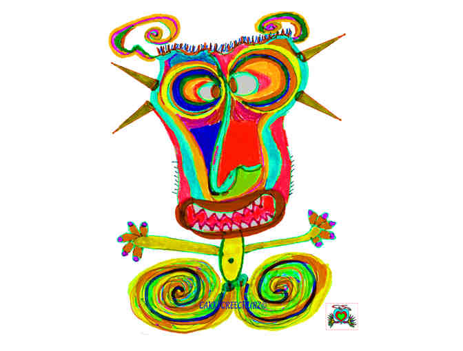 Original art. Medium: markers and colored pencils on archival paper. 8" x 10". One of 88. Professionally framed. The majority of the sale of this art goes to the artist, Kelley Karel, living well with a disability.