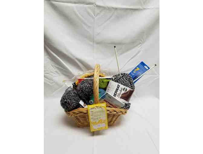 This basket is a knitter's dream come true! With two knitting books, looms, needle sets, and of course yarn, you'll be all set to start a new project!