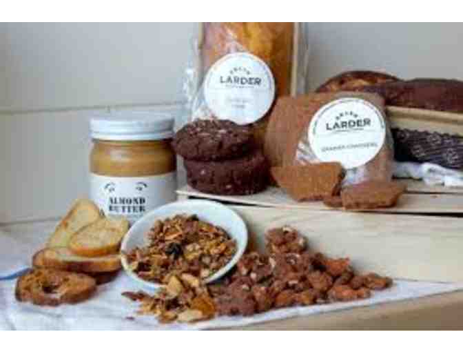 We want every American to know the goodness of the Larder: fine food, made with love and expertise, served with a knowing smile. So we put this box together of all the Larder goodness. Babka, Granola, Grahams, Olive Oil Cake, Spiced Nuts, Nut Butter, perfectly seasoned Crostini and shortbread cookies. Send a little Larder love.