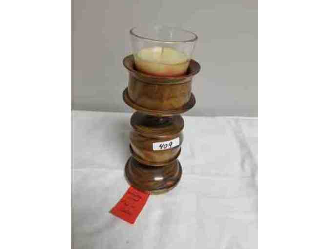 Wood Candle Holder with Candle II Handcrafted by Vern Yelle