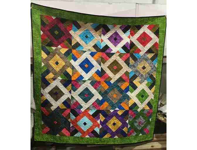 Bursting with colors and geometric patterns this quilt will add color to any room!