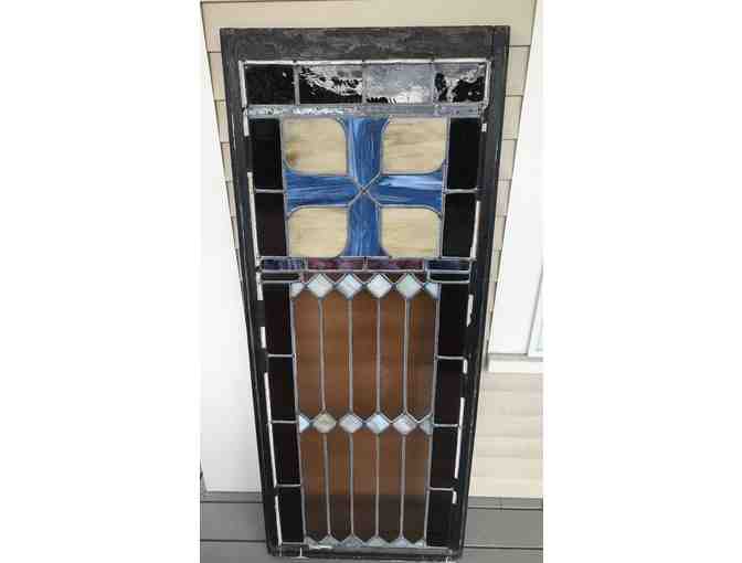 This window is one of a set (the others are available at Old House Parts) and was salvaged from a former church in Biddeford. It is estimated that this window is from the 1880's. While the pictures try to capture its elegance, people interested can come to the Chamber to see the window in person.