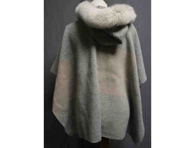 When the drop in temperature is upon us be ready to cuddle up in cozy, trendy or classic fur accessories by “Mitchie’s”. This wool wrap lined with fur around the hood is a fashionable way to stay warm this winter.