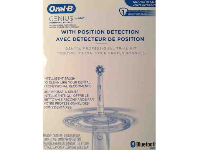 Oral-B Genius Rechargeable Toothbrush with Position Detection. Intelligent Brush to clean like your dental professional recommends. Bluetooth Smart. Handle, charger, 3 brush heads, travel case, and smartphone holder.