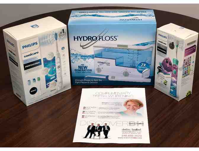 Basket with water pic, Philips Sonicare electric toothbrush, whitening kit!