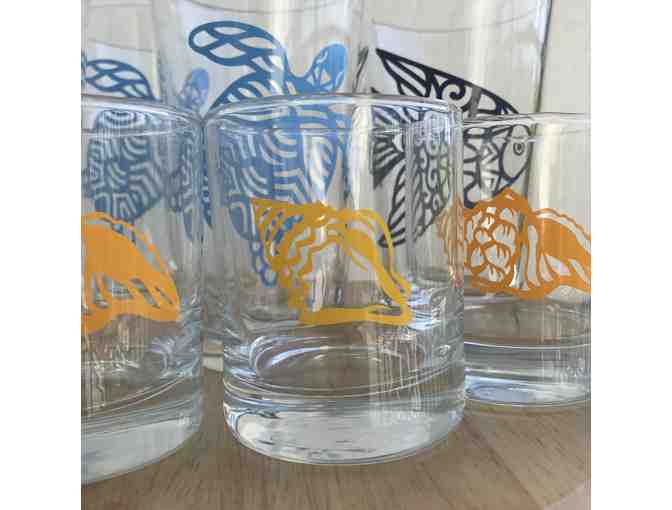 Custom Beach Themed 4 Pint Glass Set with 4 Custom Matching Rocks Glass Set donated by Consider Paradise: Purveyors of Unique Barware.