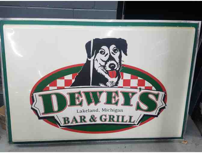 Original "Dewey's Bar & Grill" sign panel. This is one of the original sign panels from when Dewey's Bar & Grill was open on M-36 in Lakeland/Hamburg. Own some local Livingston County history! Panel is approximately 3 x 4 ft.