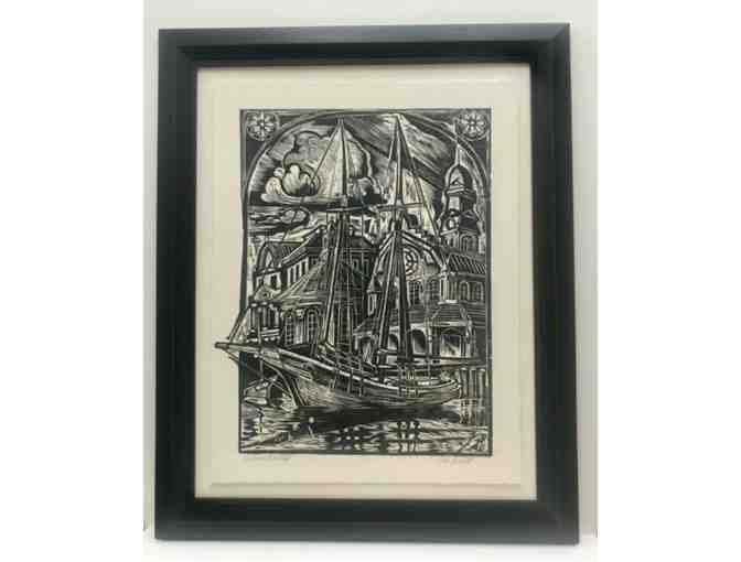 "Schooner Fantasy" Woodcut by Don Gorvett