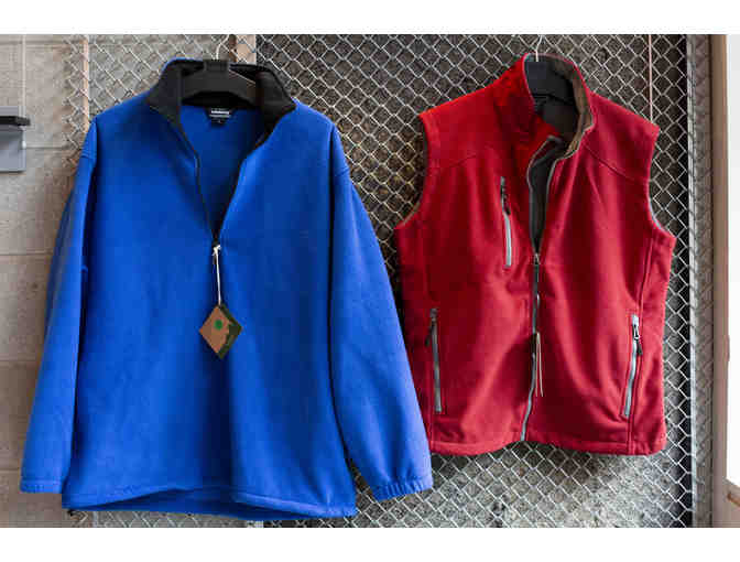 - Men's Brushed Microfleece Vest - MED, color rustic red, stand up collar, two-sided zipper pockets