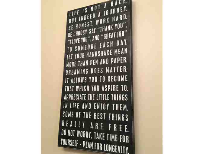 Large rustic wall hanging with inspirational message from Suhm-Thing. Perfect house warming gift!