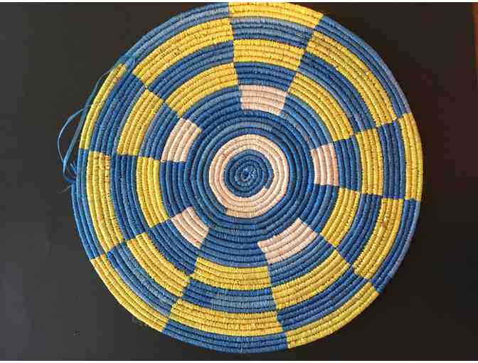 This flat basket was handwoven from papyrus by one of a community of AIDS widows in the foothills of the Ruwenzori Mountains of Uganda. These HIV positive women are members of KIDA, a local outreach to families affected by HIV/AIDS. The proceeds from their sales allow these widows to pay school fees for their children.