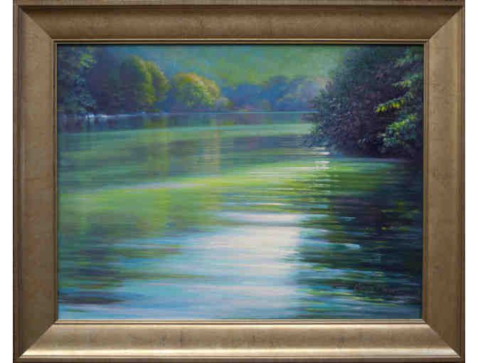 Sunlight captures a pristine day in magnificent reflection. Framed and ready to hang, this piece measures 23" X 29". Ms. Powell is an award-winning artist, a graduate of the Schuler School of Fine Art, and has been an art instructor for 40 years. She never tires of capturing her subject's personality and characteristics, creating expressive pet portraits, or finding serenity in a still life that touches your emotions, memories, and intellect.
