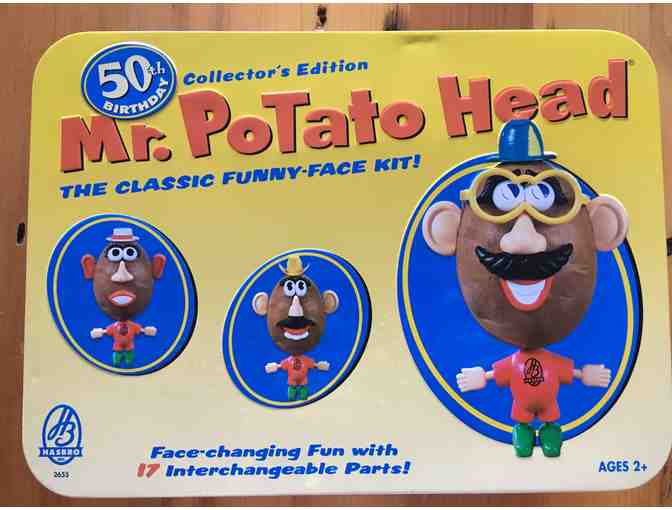 Mr.. Potato Head 50th Birthday Collector's Edition in metal box. 17 interchangeable parts. Original packaging, never opened. In excellent condition. Generously donated by Chris Byrne.