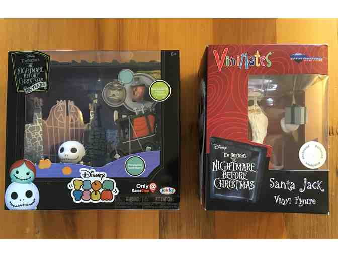 Tim Burton's Nightmare Before Christmas gift set includes: Santa Jack vinyl figure, 6.5" x 4.5" and The Mayor, 7" x 6.5". Excellent condition. Original packaging. Generously donated by Chris Byrne.