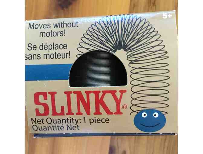 Original packaging, old fashioned, Vintage original style metal Slinky. Generously donated by Chris Byrne.